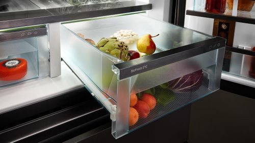 Kasaforta BioFresh Professional i jep ushqimit një freski shtesë për një afat të gjatë në ruajtje – përfshihet efekti mahnitës: Falë HydroBreeze, një mjegull e ftohtë mbulon frutat dhe perimet si një balsam mbrojtës. Në kombinim me një temperaturë pak mbi 0 °C dhe lagështi të lartë, frutat dhe perimet e papaketuara ndihen si në shtëpi.