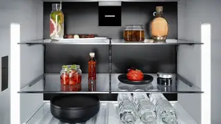 Dëshironi të ftohni frutat dhe perimet si profesionistët? Do të frymëzoheni nga HydroBreeze. Mjegulla e ftohtë e kombinuar me një temperaturë në kasafortë prej pak mbi 0 °C i jep ushqimit një shtytje shtesë për një afat më të gjatë në raft. Dhe krijon një efekt të vërtetë vizual mahnitës. HydroBreeze aktivizohet çdo 90 minuta për 4 sekonda dhe për 8 sekonda kur hapet dera.
