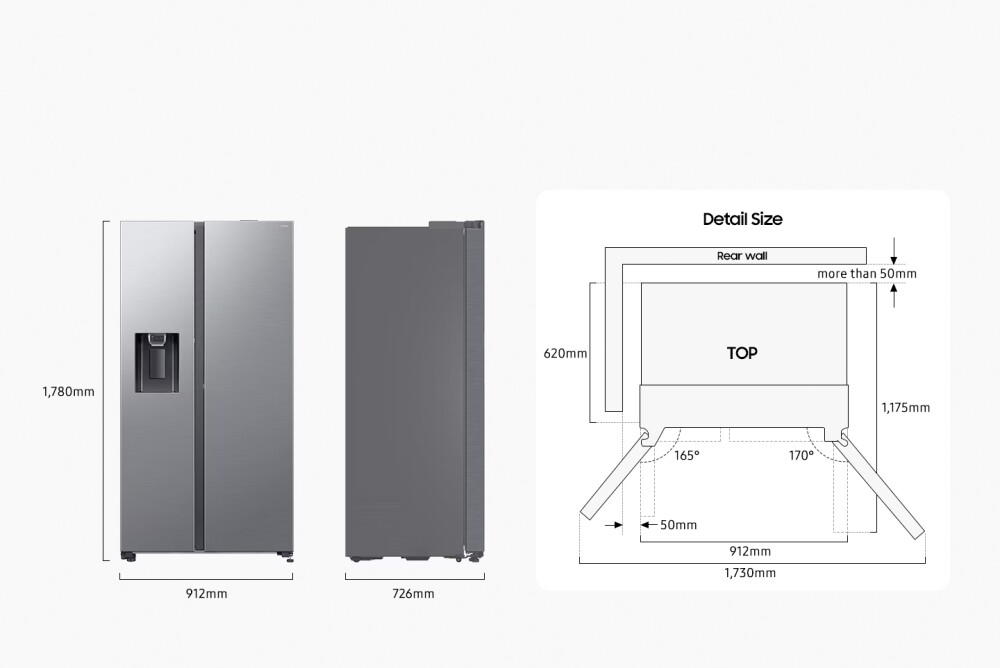 Dimensionet e pajisjes, duke përfshirë dyert pa doreza (Gj x L x Th) (mm): 912 x 1780 x 726