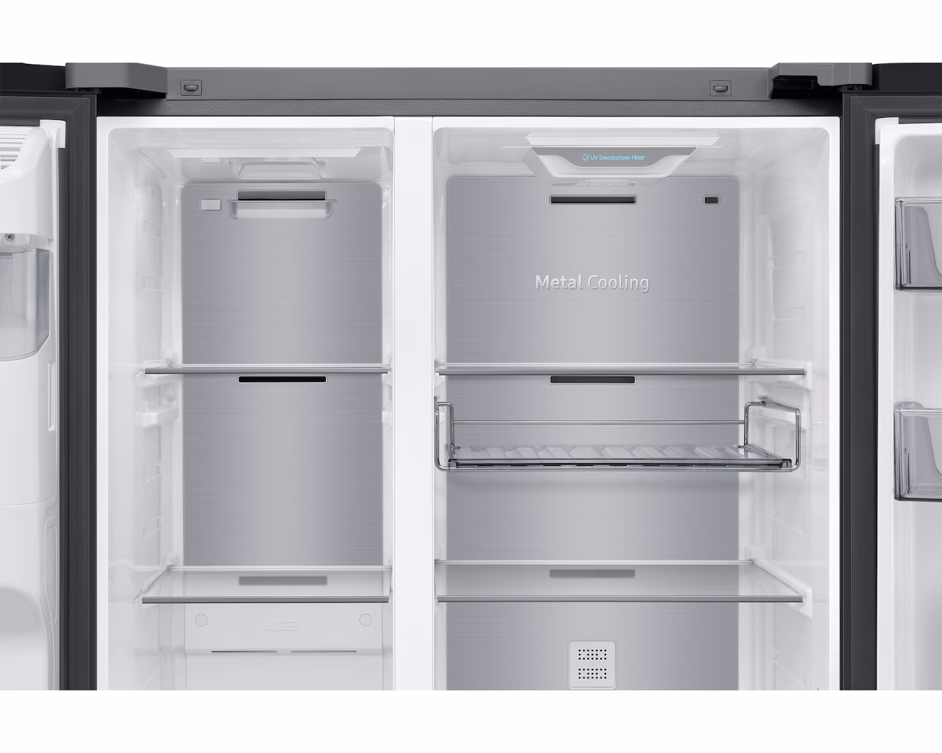 Hapeni frigoriferin tuaj në çast! Me këtë veçori, mund ta hapni automatikisht derën duke prekur sensorët në të dyja anët*. Sensorët e dritës janë të lehtë për t’u gjetur dhe lëshojnë një sinjal të dëgjueshëm për t’ju njoftuar kur dera hapet. Për më tepër, sipërfaqja e lëmuar dhe pa doreza e frigoriferit është një zgjidhje elegante dhe estetikisht e këndshme.