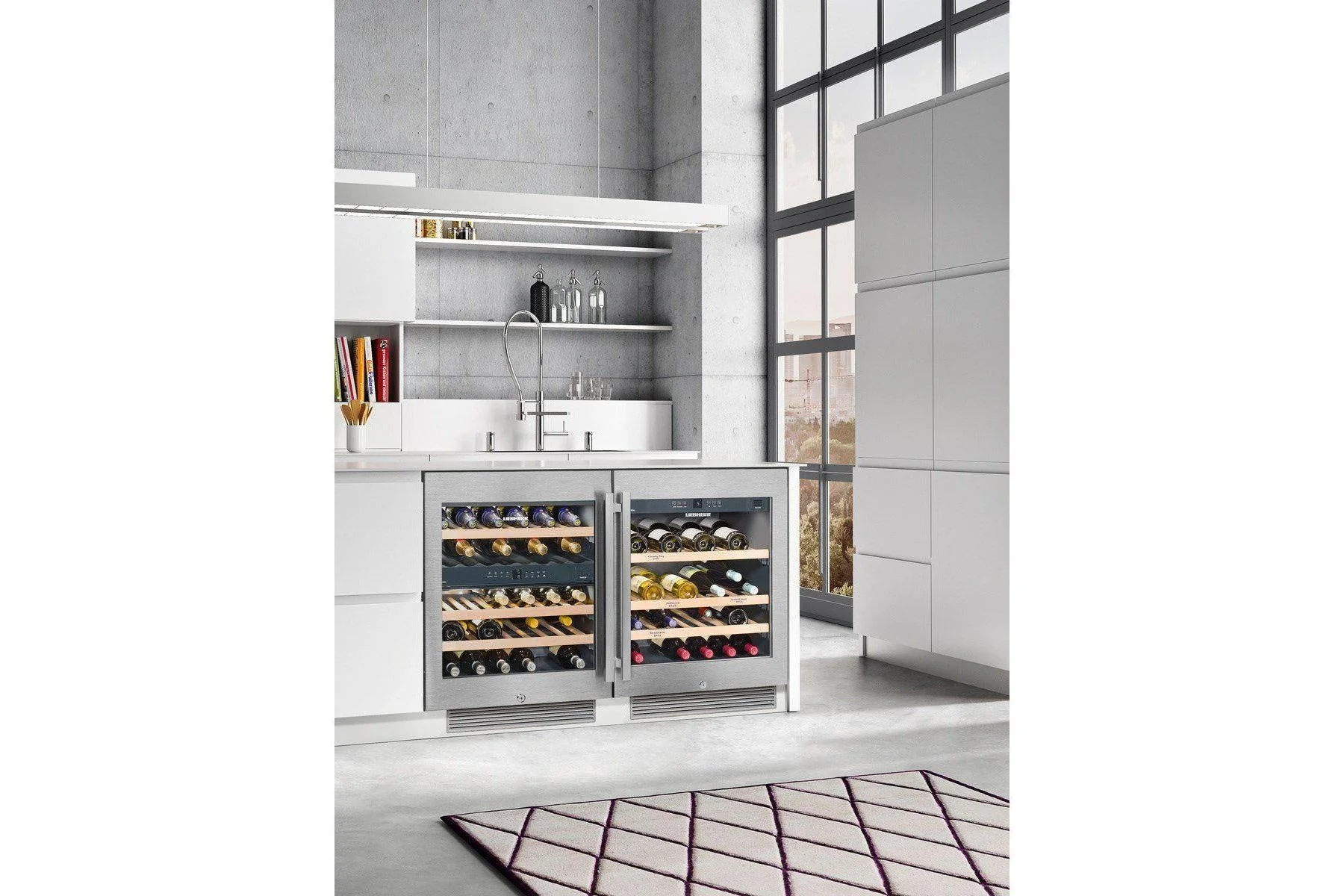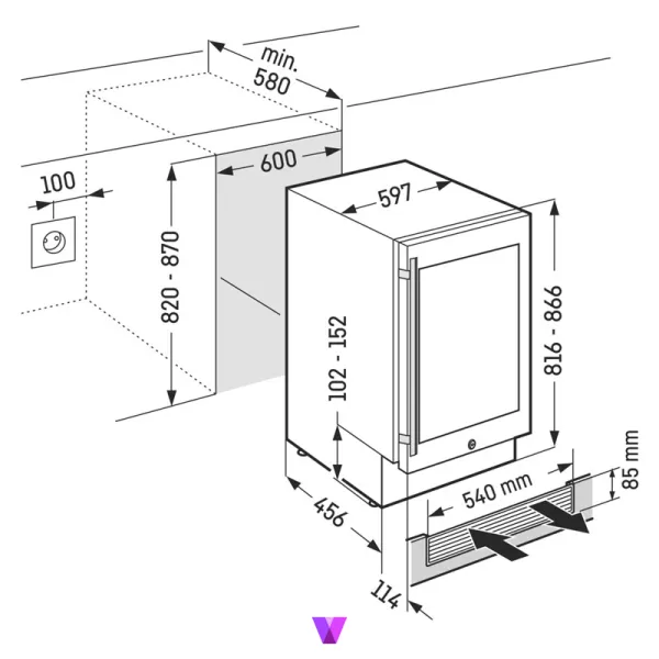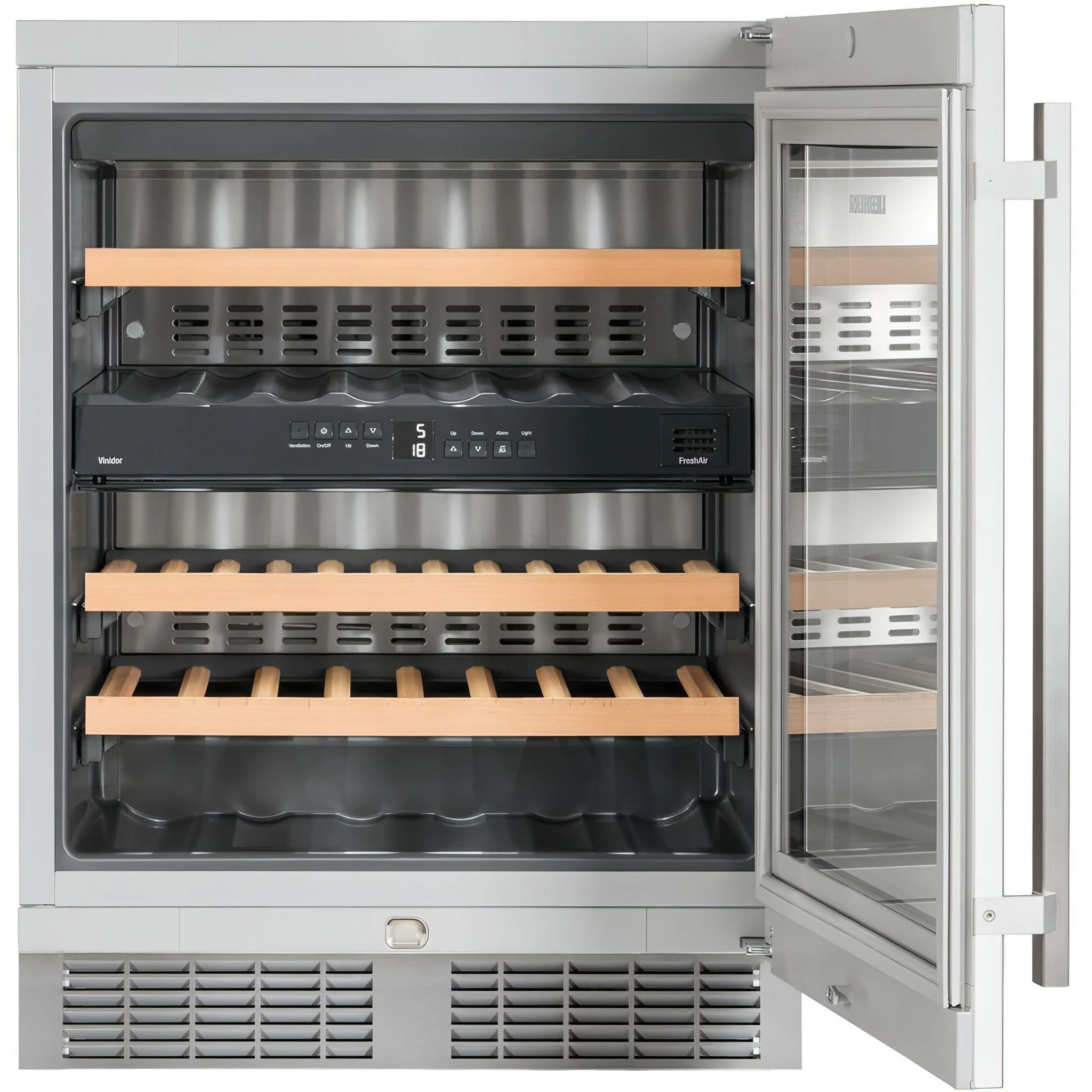Ndarja e bodrumit Shkrirja: Me ventilim automatik Ftohja: Në dispozicion Filtri i karbonit të aktivizuar: Në dispozicion Kontrolli i lagështisë: Me anë të ventilimit Ndriçimi: Rafti LED Materialet: Rafte druri Numri i rafteve: 5 nga të cilat në shina teleskopike: 3 Dimensionet e kamareve në cm (L/G/Th): 82-87 / 60 / min. 55 Mentesha të derës: Mentesha djathtas/të kthyeshme Anët: Argjend Dera: Derë xhami e izoluar me kornizë çeliku Doreza / Me mekanizëm hapjeje të integruar: Çelik