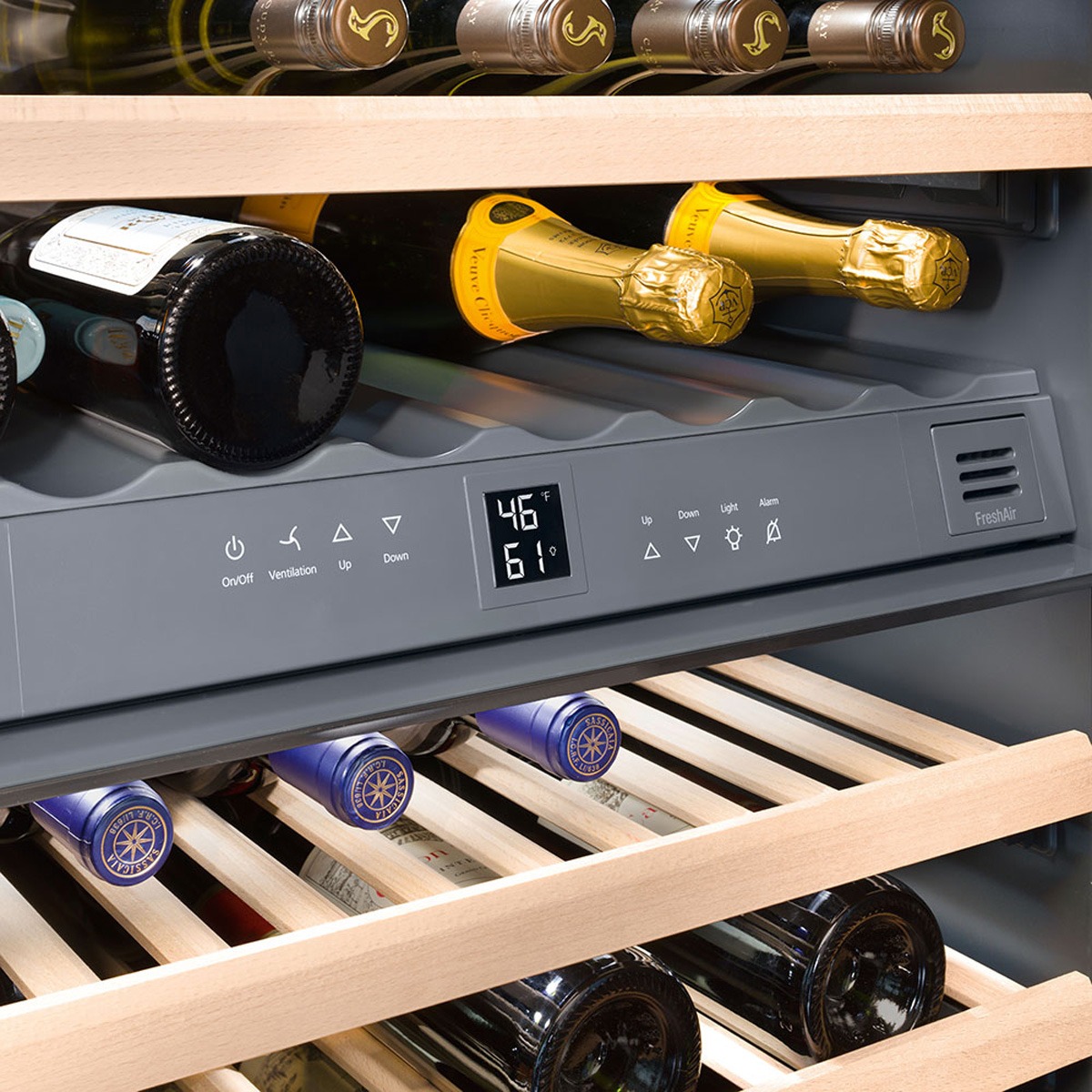 Qoftë verë e kuqe apo e bardhë, mund të piqet siç duhet vetëm nëse mbahet në temperaturën ideale. Kjo mund të vendoset në shkallën e saktë duke përdorur sistemin e saktë elektronik të kontrollit dhe teknologjinë më të fundit të kondicionimit të ajrit, dhe të mbahet konstante pavarësisht se sa ndryshon temperatura e ambientit.
