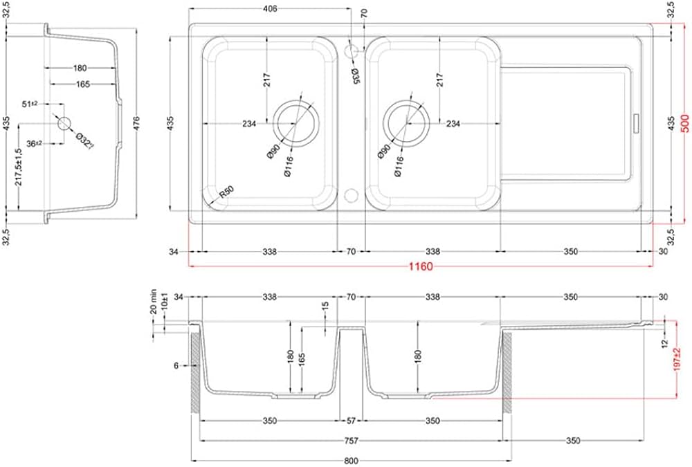 Dimensionet (mm) 1160 x 500