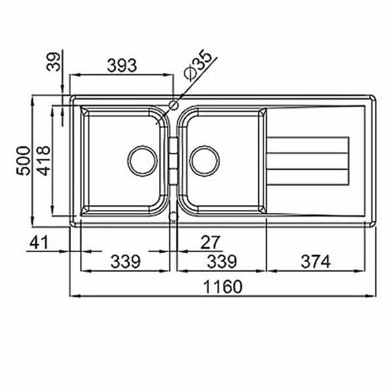 Vrima të thella (mm) 1140 x 485