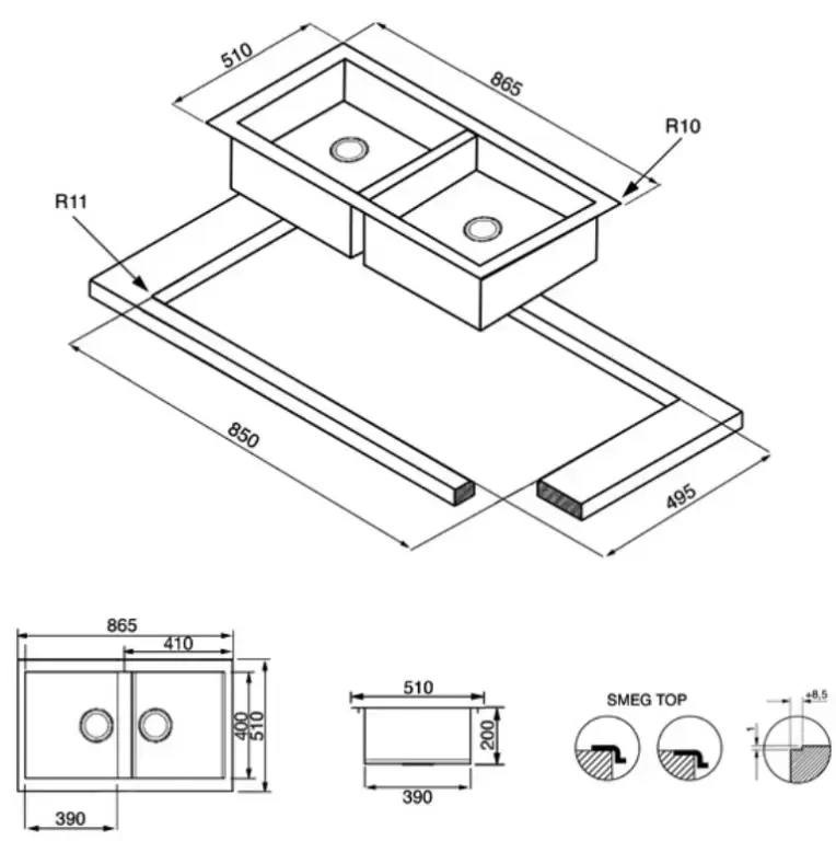 LAVAPJATE SMEG LR862 QUADRA 2+0  INOX 86X51 CM - Image 4