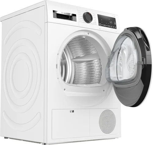 Bosch WQG24108IT Serie 6 është tharëse e lirë me kapacitet 9 kg dhe efikasitet A++, e pajisur me pompë nxehtësie për tharje të butë dhe kursim energjie. Sensori AutoDry mat lagështinë në kohë reale për rezultate të qëndrueshme dhe pa rrudha, ndërsa kazan i madh 112 L dhe programet e shumta përfshijnë pambuk, lesh, sintetike, delikate, jeans, sportive dhe më shumë. Ideal për familje që duan performancë të besueshme dhe kujdes profesional ndaj rrobave.